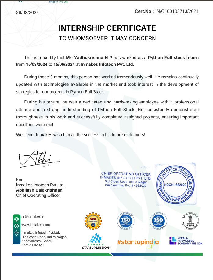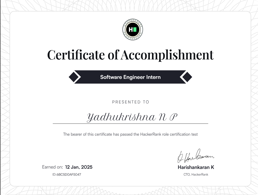 Software engineering internship skills assessment certificate.